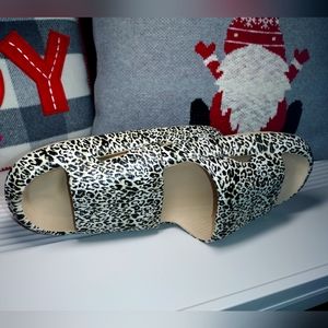 Sz 8.5-9 Animal Print Slides NEW, Foam Black, White, Yellow