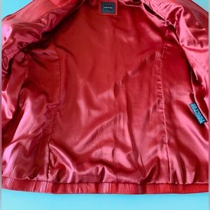 Red Luxurious Leather Cropped Zippered Jacket