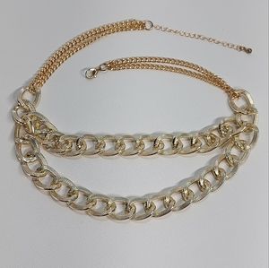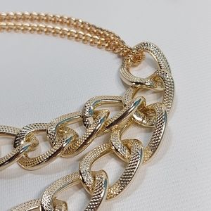 Chunky Gold Tone Double Strand Womens Statement Necklace