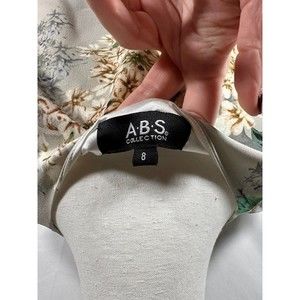 This dress is available in size 8 and is a regular fit. The multicolor pattern is eye-catching and unique. It is not a vintage item and has been well-maintained. The wrap style and brand name of A.B.S Collection make this dress a stylish addition to any wardrobe.