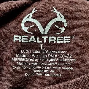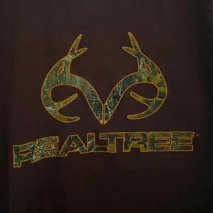 Realtree Men’s Brown Hunting T-Shirt with Orange/Camo Antler Logo Size Large
