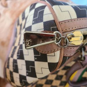 Vintage L.A.M.B. Gwen Stefani Leather Satchel Ombre Checkered Handbag Purse
