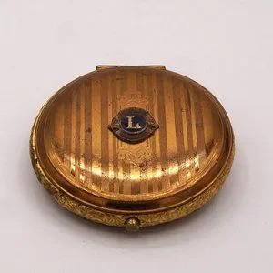 Vintage Elgin Style Brass Rouge & Powder Lions Club Compact