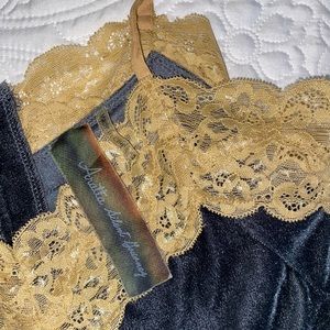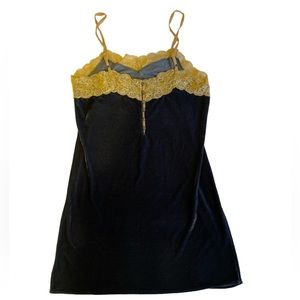 FREE PEOPLE - Aratta Velvet Dreams Navy Blue w/ Gold Lace Cami Nightgown