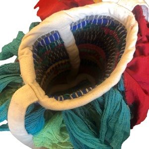 Unique bag made from recycled kantha fabric. Fits a bottle of wine but makes an interesting purse. Long handle, a little too short to be worn crossbody. 12” tall. Good condition! Color may vary due to lighting. Your satisfaction is very important to me, please let me know if you have any questions before purchasing. Thank you for visiting my listing and Happy Shopping!