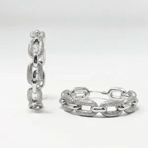 Sterling silver 925 chain hoop textured and smooth earring Peru Peruvian. Great vintage condition.