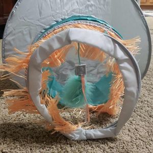 Play hide and rest three-in-one smarty cat frenzy cat hide out . Fringe dangling toy and springy end entice cats to play and pounce with tunnel.