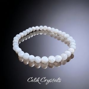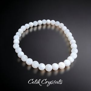 - Step into the world of spirituality and style with our enchanting Moonstone Bracelet. Crafted from rare, all-natural crystals, this bracelet features 8mm a comfortable 7.5-inch length that stretches to fit most wrists.