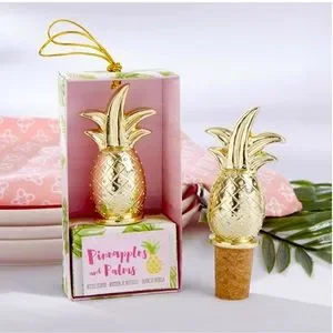 A symbol of hospitality and even better for a tropical themed party, these Pineapple Bottle Stopper are the perfect favor! The gold tone and cork bottomed bottle stoppers will keep your wine (or other bottled beverage) fresh and stylish at the same time. They're sure to make a fun addition to your bridal shower or wedding.