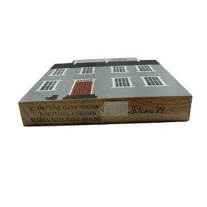 The Cat's Meow Village Maria Mitchell house, one of the Nantucket series, vintage, signed Faline 1989. Wood building shelf sitter introduced in 1987 and retired December 1992. From estate sale collection.