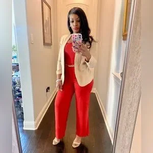 Tube Top Red Jumpsuit, Women’s Bandeau Jumpsuit, full length wide leg pants NWT
