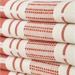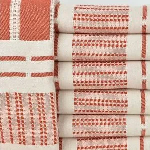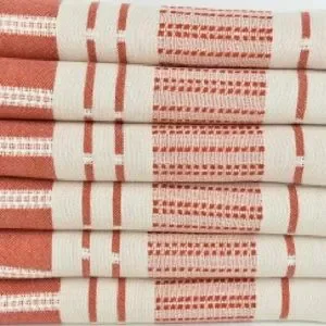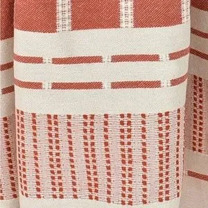 NEW! SXSW style in desert clay red. This versatile textile with dash, dots and lines minimalist decor. Complimentary of natural white tones, wood and a fire adding a pop of warm tones to your home for winter. Whether you're seeking to refresh your living room sofa, dining room tabletop, bathroom towels or beds edge; this is exquisite touch of style. All season weight and weave soft for sensitive skin from day one. Made for living life better. FLiPSiDE you decide light side or colorful side.