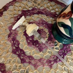 Dispenser 5" tall. Pump works and has been soaked but just abit more scrubbing required (I'm old and tired). Pics of areas in question. No odors from interior and appears clean-ish. No cracks or chips. Has single felt nonskid dot on bottom. Nonsmoking house with helpful cat. Dispenser part will be wrapped securely for safe transport to new home. Item out of stock on Replacements.