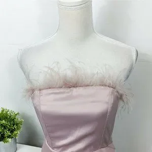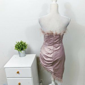 LAVISH ALICE NWT Pink Satin Feather Strapless Mini Dress Size 6