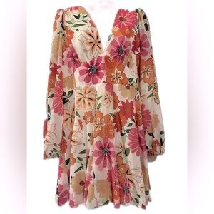 Beautiful floral dress! Deep v-neck with chiffon balloon sleeves. Mid length (will add measurements). NWOT never worn