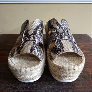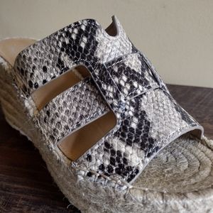 Marc Fisher Robbyn Gray Cream Snake Leather Platform Espadrille Sandals Size 7.5