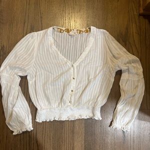 Anthropologie Hem & Thread Top-Size Large. Good used condition. Love the button detail and ruffles on sleeves.