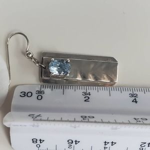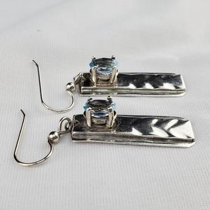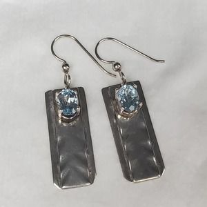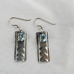 Hand Forged Sterling Silver Dangle Rectangle Earrings with Blue Topaz