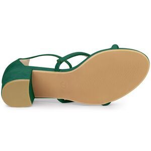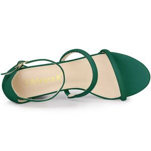 Open Toe Strappy Green Chunky Heels Sandals