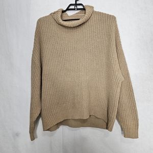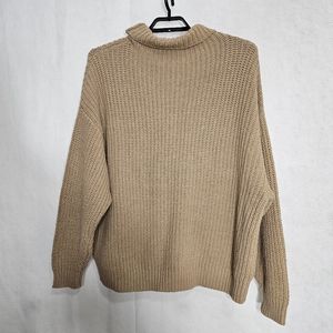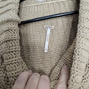 Free People Tan Chunky Cable Knit Turtle Neck Oversized Sweater Medium