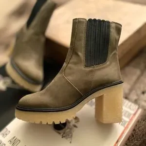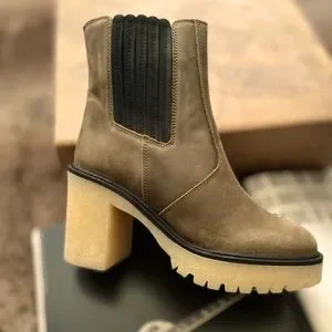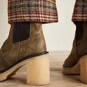 Make a statement in these so cool leather Chelsea boots featured in a chunky heeled design with elastic side details and a vintage esthetic. These boots feature intentionally distressed detailing for a worn-in look.