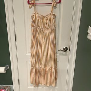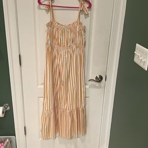 π This Gia midi dress is cut from airy cotton-poplin with a gently gathered bodice and a breezy tiered skirt. π The knotted shoulder straps mean you can customise the fit