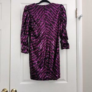 Betsey Johnson Fuchsia Black Striped Sequin Mini Dress NWT Small