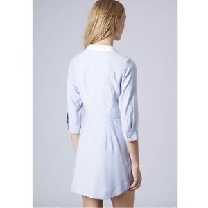 Topshop Fitted Chambray Baby Blue Shirt Dress with White Collar and Pockets
