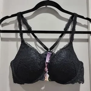 Romantic Corded Lace Front-Closure Push Up Bra features a plunging neckline and curve-enhancing padded cups. The racerback wing is lined with power mesh, adding comfort and support to this ultra-sexy bra.