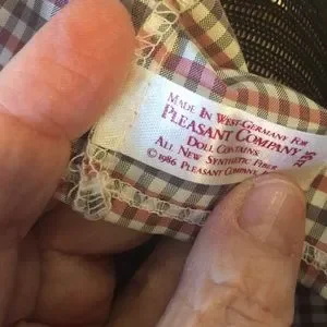 Pleasant Company 1986 Samantha Parkington doll with checked taffeta dress & locket, matching bow, black stockings and black maryjanes she was purchased in.
