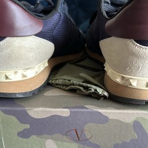 Valentino Garavani Navy Blue Off-White & Burgundy Rockrunners Size 44 or 11