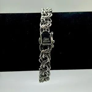 Vintage Sterling Silver double cable link bracelet, 7 inch Rare find