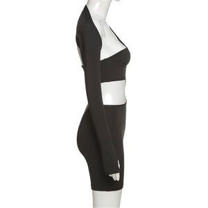 •Athletic shorts bodycon romper with waist cutout