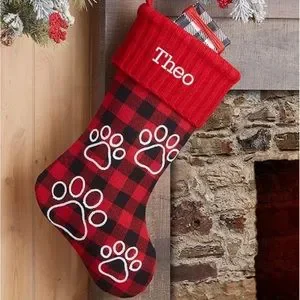 NEW Buffalo Check Paw Prints Personalized Red Dog Christmas Stocking