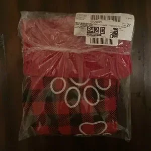 🎁 Buffalo check pattern with embroidered paw prints and a knit cuff