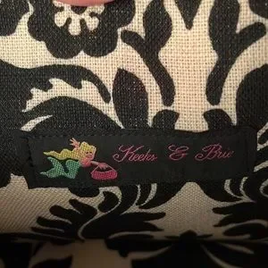 Keeks & Brie Navy Blue with Bright Pink Ribbon Handbag Satchel