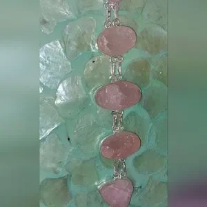 Rough cut rose quartz, Toggle Closure, 925 silver overlay. Brand new