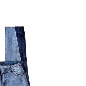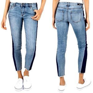 Kut From The Kloth Reese Two Tone Side Stripe Contrast Topstitching Five Pocket Styling Ankle Straight Leg Raw Hem Jeans Denim Size 6 - Excellent condition.