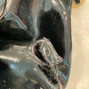Valentino Garavani Black Patent Leather Braided Handle Shoulder Bag Tote. The bag has some signs of wear - where the patent leather is folded - see photos. Priced accordingly to the wear.