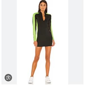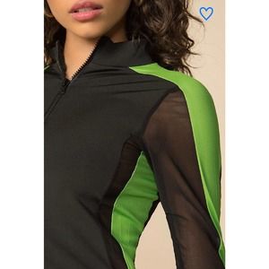 Superdown Mesh Long Sleeve 1/4 Zip Bodycon Mini Dress Black Green Womens Small