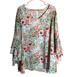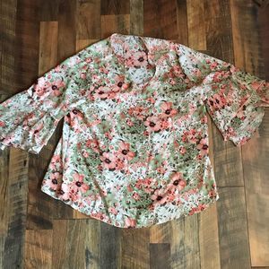 C established 1946 Cato plus size 18/20 3/4 sleeve floral orange green pleated - polyester