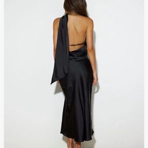 Brand new never worn! Size: large Colour: black Length: Mid length Material: Satin No tags on the dress. Never got a chance to wear this dress, hoping to find a home for it!