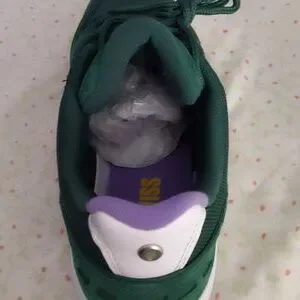 Brand new shoes never worn very stylish looks great with jeans can be dressed up or down great vibrant green color suede shoe for winter or summer .