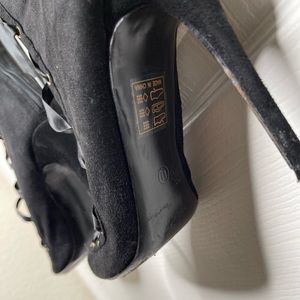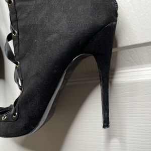 Super cute & Sexy, will take any outfit to the next level. You can lace in front & there’s a zipper in back, so this boot can fit Almost any size leg. I’ve wore these a few times but they still have so much life and wear left in them. Look at all pictures for current condition of the full boot. Size 11 but fits like a 10.