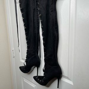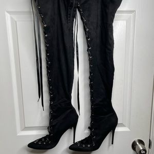 Lace Up Black Thigh High Stiletto Boots
