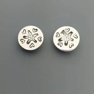 beautifully hand crafted and hand stamped starfish bordered with 5 hearts