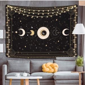 ✨Trending indie/hippie banner & wall art! Features retro-inspired sun, lunar moon phases & starry constellations. Perfect for home decor.