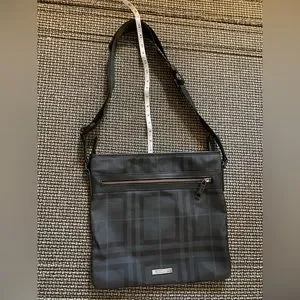 BURBERRY Black Check Messenger Bag w/LOGO Strapping/italian made🎁EUC