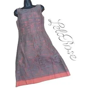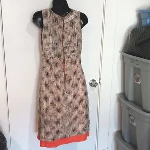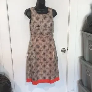 authentic Lela Rose brown and orange scoop neck sleeveless fit flare midi dress.