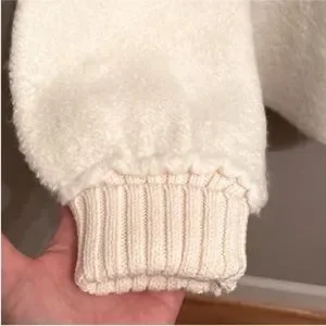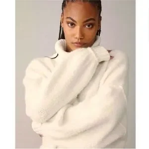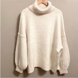 chunky sweater oversized white cream turtleneck sweater preppy bohemian boho cold weather wear winter fuzzy fluffy cable-knit crochet knit slouchy sweater oversized turtleneck sweater cowl neck teddy bear soft eyelash designer birthday holiday Christmas gift present New Year's Eve party